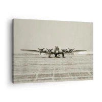Impression sur toile - Image sur toile - Avion historique à l'aéroport en sépia - 70x50cm - Toujours prêt! - Décoration murale moderne pour le salon et la chambre ARTTOR