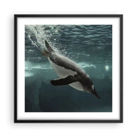 Impression sur toile - Image sur toile - Un pingouin plongeant dans les profondeurs de l'eau glacée - 120x80cm - Bienvenue dans mon monde - Décoration murale moderne pour le salon et la chambre ARTTOR