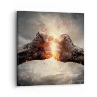 Impression sur toile - Image sur toile - Poings serrés dans une scène d'incendie dynamique - 100x70cm - Lève-toi pour le combat - Décoration murale moderne pour le salon et la chambre ARTTOR