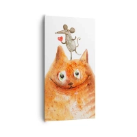 Impression sur verre - Image sur verre - Un dessin d'un chat avec une souris sur la tête tenant un cœur - 80x120cm - Amour paradoxal - Décoration murale moderne pour le salon et la chambre ARTTOR