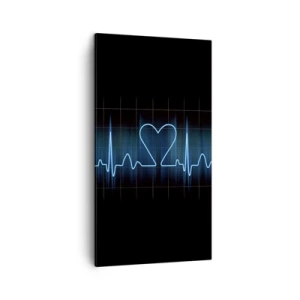 Impression sur toile - Image sur toile - Une ligne de vie avec un cœur sur un fond de surveillance médicale dans des tons bleus. - 80x120cm - Au rythme du cœur - Décoration murale moderne pour le salon et la chambre ARTTOR