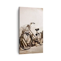 Impression sur toile - Image sur toile - Deux vélos appuyés contre un vieux mur de style rétro - 80x120cm - Le charme inoubliable du passé - Décoration murale moderne pour le salon et la chambre ARTTOR