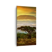 Impression sur verre - Image sur verre - Paysage africain avec le Kilimandjaro au lever du soleil - 80x120cm - Un rêve de voyageur - Décoration murale moderne pour le salon et la chambre ARTTOR