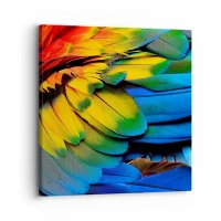 Impression sur toile - Image sur toile - Gros plan des plumes colorées d'un perroquet - 50x70cm - Oiseau de paradis - Décoration murale moderne pour le salon et la chambre ARTTOR