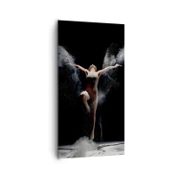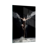 Impression sur verre - Image sur verre - Une danseuse en mouvement avec un effet de poussière saisissant sur fond noir - 80x120cm - Les elfes existent - Décoration murale moderne pour le salon et la chambre ARTTOR