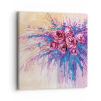 Impression sur verre - Image sur verre - Un bouquet de roses dans les tons de rose et de violet sur un fond pastel - 50x70cm - Fontaine aux roses - Décoration murale moderne pour le salon et la chambre ARTTOR