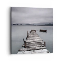 Impression sur toile - Image sur toile - Un pont en bois menant à la surface calme du lac - 50x70cm - Tu peux partir demain - Décoration murale moderne pour le salon et la chambre ARTTOR