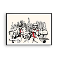 Affiche dans un cadre noir - Poster - Un duo de jazz avec saxophone et guitare sur fond de ville - 100x70cm - improvisation new-yorkaise - Décoration murale moderne pour le salon et la chambre ARTTOR