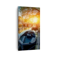 Impression sur toile - Image sur toile - Canal d'Amsterdam au coucher du soleil - 80x120cm - Début de journée à Amsterdam - Décoration murale moderne pour le salon et la chambre ARTTOR