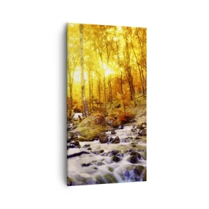 Impression sur verre - Image sur verre - Forêt d'automne avec un ruisseau parmi les feuilles dorées - 70x100cm - Pierres serties d'or et de platine - Décoration murale moderne pour le salon et la chambre ARTTOR