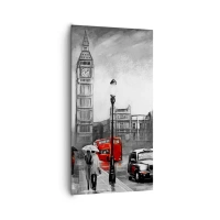Impression sur verre - Image sur verre - Une scène londonienne en noir et blanc avec des accents rouges - 80x120cm - Pas du tout une ville grise - Décoration murale moderne pour le salon et la chambre ARTTOR