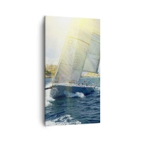 Impression sur toile - Image sur toile - Course de yachts sur fond de côte ensoleillée - 80x120cm - Il est temps de quitter la ville - Décoration murale moderne pour le salon et la chambre ARTTOR