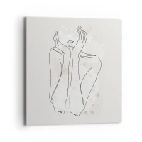 Impression sur toile - Image sur toile - Ligne de contour montrant les mains d'une femme sur un fond clair - 80x120cm - Instant de rêve - Décoration murale moderne pour le salon et la chambre ARTTOR