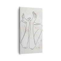 Impression sur verre - Image sur verre - Ligne de contour montrant les mains d'une femme sur un fond clair - 80x120cm - Instant de rêve - Décoration murale moderne pour le salon et la chambre ARTTOR