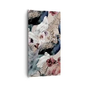 Impression sur verre - Image sur verre - Un paysage avec des plumes de paon, des roses et des oiseaux dans un style romantique. - 80x120cm - Dans un jardin de palace - Décoration murale moderne pour le salon et la chambre ARTTOR
