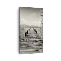 Impression sur toile - Image sur toile - Une jetée en bois parmi les hautes herbes au-dessus d'un lac aux tons sépia - 80x120cm - Dans le calme de l'herbe - Décoration murale moderne pour le salon et la chambre ARTTOR