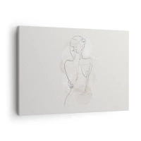 Impression sur toile - Image sur toile - Un croquis minimaliste d'une silhouette féminine sur un fond clair. - 70x50cm - Comme un instrument sensible - Décoration murale moderne pour le salon et la chambre ARTTOR