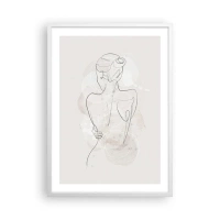 Impression sur toile - Image sur toile - Un croquis minimaliste d'une silhouette féminine sur un fond clair. - 70x100cm - Comme un instrument sensible - Décoration murale moderne pour le salon et la chambre ARTTOR