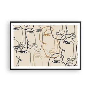 Affiche dans un cadre noir - Poster - Visages minimalistes au trait sur fond clair - 100x70cm - Portrait multiplié - Décoration murale moderne pour le salon et la chambre ARTTOR