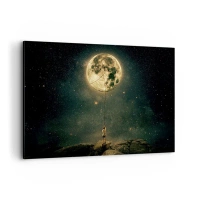 Impression sur toile - Image sur toile - L'homme avec la lune contre le ciel étoilé - 120x80cm - Celui qui a volé la lune - Décoration murale moderne pour le salon et la chambre ARTTOR