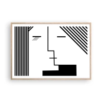Affiche dans un cadre noir - Poster - Abstraction géométrique d'un baiser en noir et blanc - 100x70cm - Juste un baiser - Décoration murale moderne pour le salon et la chambre ARTTOR