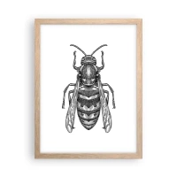 Affiche dans un cadre noir - Poster - Un motif de guêpe de dessin animé sur fond blanc dans un style minimaliste. - 100x70cm - D'une planète d'insectes - Décoration murale moderne pour le salon et la chambre ARTTOR
