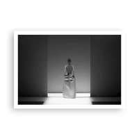 Affiche - Poster - Une peinture en noir et blanc avec une scène minimaliste d'une femme dans un espace géométrique. - 100x70cm - Simplicité raffinée - Décoration murale moderne pour le salon et la chambre ARTTOR