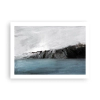 Affiche - Poster - Paysage abstrait avec de l'eau et un rivage rocheux - 100x70cm - Eau – terre : choc des éléments - Décoration murale moderne pour le salon et la chambre ARTTOR