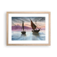 Affiche dans un chêne clair - Poster - Soirée au port - 40x30 cm