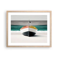 Affiche dans un cadre noir - Poster - Un bateau sur la plage avec une mer turquoise en arrière-plan - 100x70cm - A sa place - Décoration murale moderne pour le salon et la chambre ARTTOR