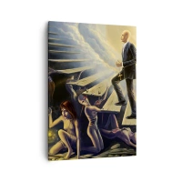 Impression sur toile - Image sur toile - Une scène symbolique du chemin vers la lumière à travers un escalier délabré - 50x70cm - Voyage dantesque vers la lumière - Décoration murale moderne pour le salon et la chambre ARTTOR