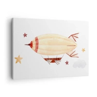 Impression sur toile - Image sur toile - Un dirigeable peint à la main sur fond d'étoiles - 70x50cm - Dirigeable - Décoration murale moderne pour le salon et la chambre ARTTOR