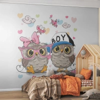 Papier Peint Autocollant Deluxe Sticker - On s'aime! - Pour les enfants, Hibou, Papillon - 400x280 cm